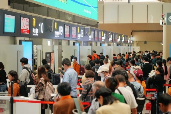 Пассажиры в очереди на предполетный досмотр. Фото предоставлено аэропортом Мэйлань.