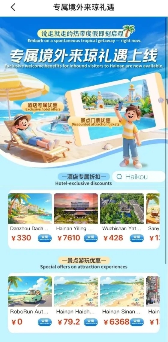 Пакет льгот и скидок охватывает основные туристические города и уезды Хайнаня, а также ключевые сценарии потребления. В него входят следующие категории привилегий: