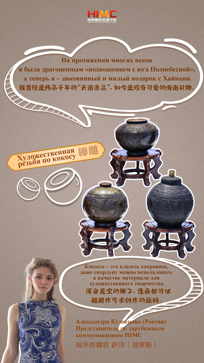 А что, если бы самобытные художественные изделия Хайнаня могли говорить? Как бы они представили себя в Китае и за рубежом? Представители по зарубежным коммуникациям HIMC помогут им в этом. Выразительно и лаконично представят художественные изделия Хайнаня и познакомят читателей с долгой историей нематериального культурного наследия и культурным очарованием Хайнаня.