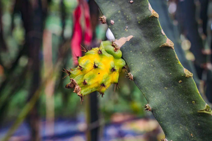 Золотисто-жёлтые плоды, хорошо спрятавшиеся под пышной зеленью фруктовой плантации Люлуо в деревне Тайлоу – это и есть наш сегодняшний герой – питахайя жёлтая (лат. Hylocereus megalanthus). Деревня Тайлоу занимается выращиванием данного фрукта с 2019 года и имеет более 400 му (мера площади, равная 1/15 га) фруктовых плантаций. Являясь ярким примером отрасли вида «одна деревня – один продукт», деревня Тайлоу воплощает в себе большие надежды её жителей. Родиной питахайи жёлтой, также известной как «фрукт единорога», является Эквадор. Она богата витаминами и водорастворимыми пищевыми волокнами.