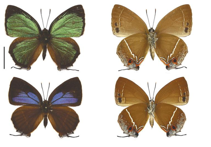 вида бабочек различаются. (Сверху – самец, снизу – самка; слева – вид сверху, справа – вид